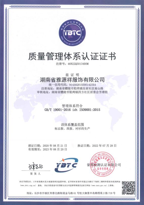 1、企業概況 湖南省雅源祥服飾有限公司地處湘贛邊境素有瓷城之稱的醴陵郊區,企業創建于1995年,是行政執(zhí)法制服、被裝的生產企業。2、組織機構 跟隨改革開放的步伐,我公司不斷發(fā)展壯大,公司董事會下設總經理辦公室、生產部、技術部、質檢部、財務部、采購部、業務部等部門,下設有流水線西服生產車間、標志服生產車間、襯衣生產車間、... [更多]